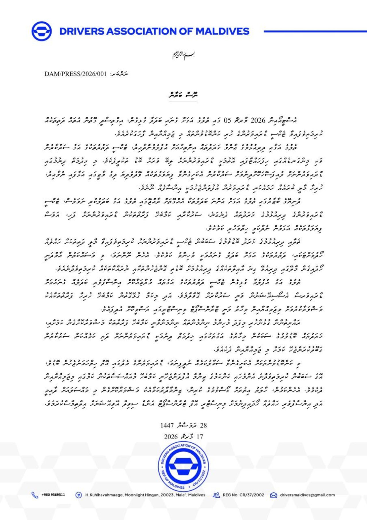 "މި ކަންބޮޑުވުންތަކަށް އެކަށީގެންވާ ސަމާލުކަމެއް ނުދީފިނަމަ، ޑްރައިވަރުންގެ މެދުގައި އޮތް ހިތްހަމަނުޖެހުން ބޮޑުވެ، އޭގެ ސަބަބުން ކުރިމަތިވެދާނެ އެންމެހައި ކަންކަމުގެ ޒިންމާ އުފުލަންޖެހޭނީ ކަމާބެހޭ މުއައްސަސާތަކުން ކަމުގައި މިޖަމިއްޔާއިން ދެކެމެވެ." ބަޔާނުގައި ބުނެފަވެ އެވެ.